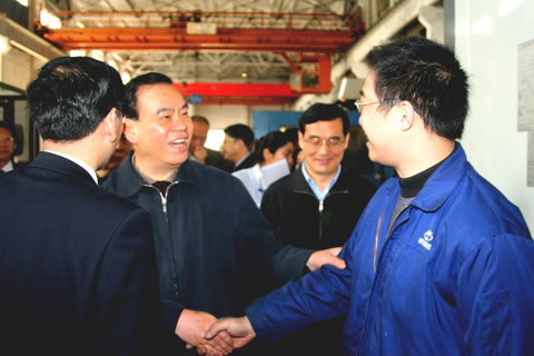 呂省長在精機(jī)公司加工車間時(shí),與精機(jī)公司經(jīng)理潘順昌、副經(jīng)理杜建勝親切握手并交談,當(dāng)呂省長得知他們現(xiàn)是該公司的管理人員,并已在企業(yè)工作幾十年,欣喜地對(duì)周圍人員說,看上去那么年輕,卻有豐富的實(shí)踐經(jīng)驗(yàn),這是企業(yè)的寶貴財(cái)富。呂省長感慨地說,杭機(jī)集團(tuán)發(fā)展很快,原來廠區(qū)在環(huán)城東路時(shí),就有近二千名員工,而現(xiàn)在人員減少,經(jīng)濟(jì)效益卻明顯提高,變化真大。呂省長指出,要充分認(rèn)識(shí)加快發(fā)展裝備制造業(yè)的重要性和緊迫性,進(jìn)一步加快發(fā)展裝備制造業(yè),推動(dòng)產(chǎn)業(yè)結(jié)構(gòu)優(yōu)化升級(jí)和經(jīng)濟(jì)增長方式轉(zhuǎn)變。