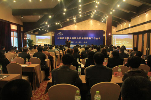 11月3日,杭機(jī)股份有限公司2011年度銷(xiāo)售工作會(huì)議于杭州藍(lán)天·清水灣國(guó)際大酒店舉行,今年的會(huì)議主題是:“讓我們攜手——共同驅(qū)走這個(gè)嚴(yán)冬,迎接市場(chǎng)春天的到來(lái)”。 來(lái)自全國(guó)各地的60多家經(jīng)銷(xiāo)公司的代表參加了會(huì)議。