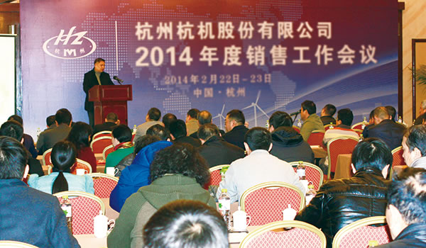 杭機(jī)股份2014年度銷售工作會(huì)議于2月22日—23日在杭州藍(lán)天清水灣國際大酒店舉行,來自全國各地的五十多家經(jīng)銷公司的近80名代表參加了會(huì)議。