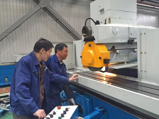 操作工和檢驗(yàn)員正在驗(yàn)收出口機(jī)床M7150*16/HZ