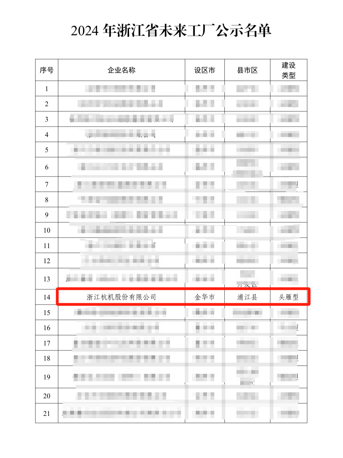 全國(guó)僅21家企業(yè)入選2024年浙江省未來(lái)工廠,浙江杭機(jī)股份有限公司更是浦江縣首家且唯一入選企業(yè)。